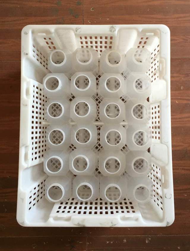 在食用菌生產領域,不論制種或栽培,袋栽或瓶栽,高溫高壓殺菌消毒是必不可少的生產環節,使用廣泛的裝袋裝瓶工具,傳統上一直采用鋼筋焊接而成,雖然制造簡單,易于批量生產。但突出的缺點就是經過高溫后,鋼筋表面氧化生銹,筐架凸凹不平,形成很多毛刺,菌袋易被刺穿,造成大量感染。且鋼筋生銹后,氧化變細脫焊,壽命很短,往往兩三年就得更換一批,造成很大浪費。而且,鋼筋筐使用單一,除了滅菌,別無它用,收儲又要占用室內很大空間。